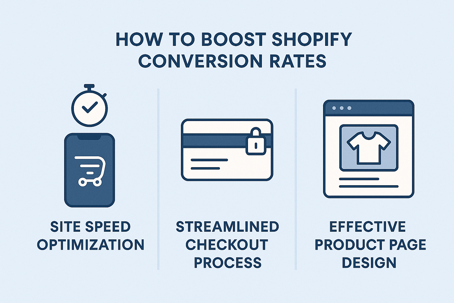 Slow loading times kill conversions. Every second of delay can drop conversion rates by 7%. For Shopify stores, reducing load time by just one second can boost conversions by 3-5%. Use tools like Google PageSpeed Insights, optimize images with TinyPNG, minimize JavaScript and CSS, leverage Shopify’s CDN, limit heavy third-party apps, and lazy load images to speed up your store.